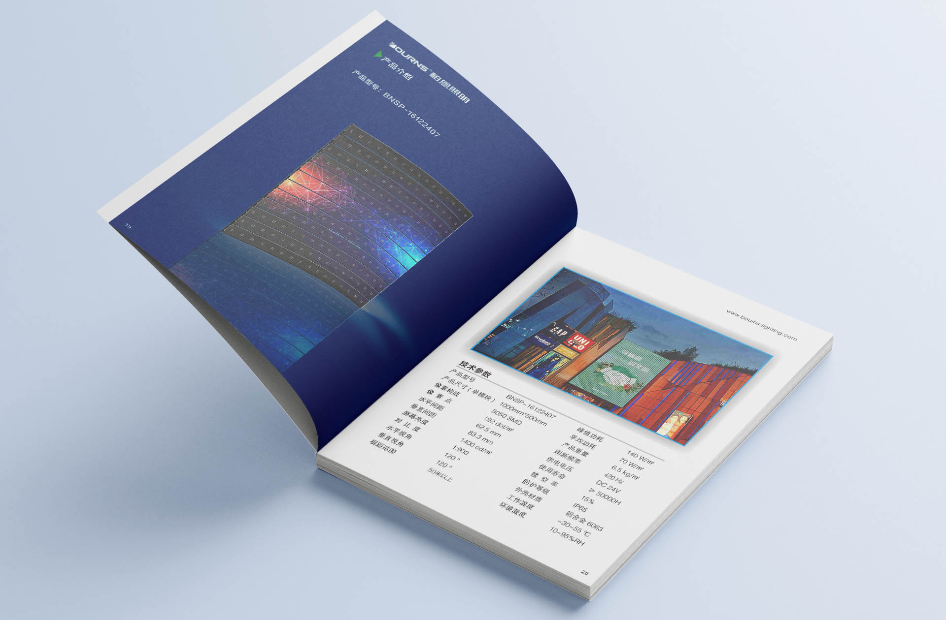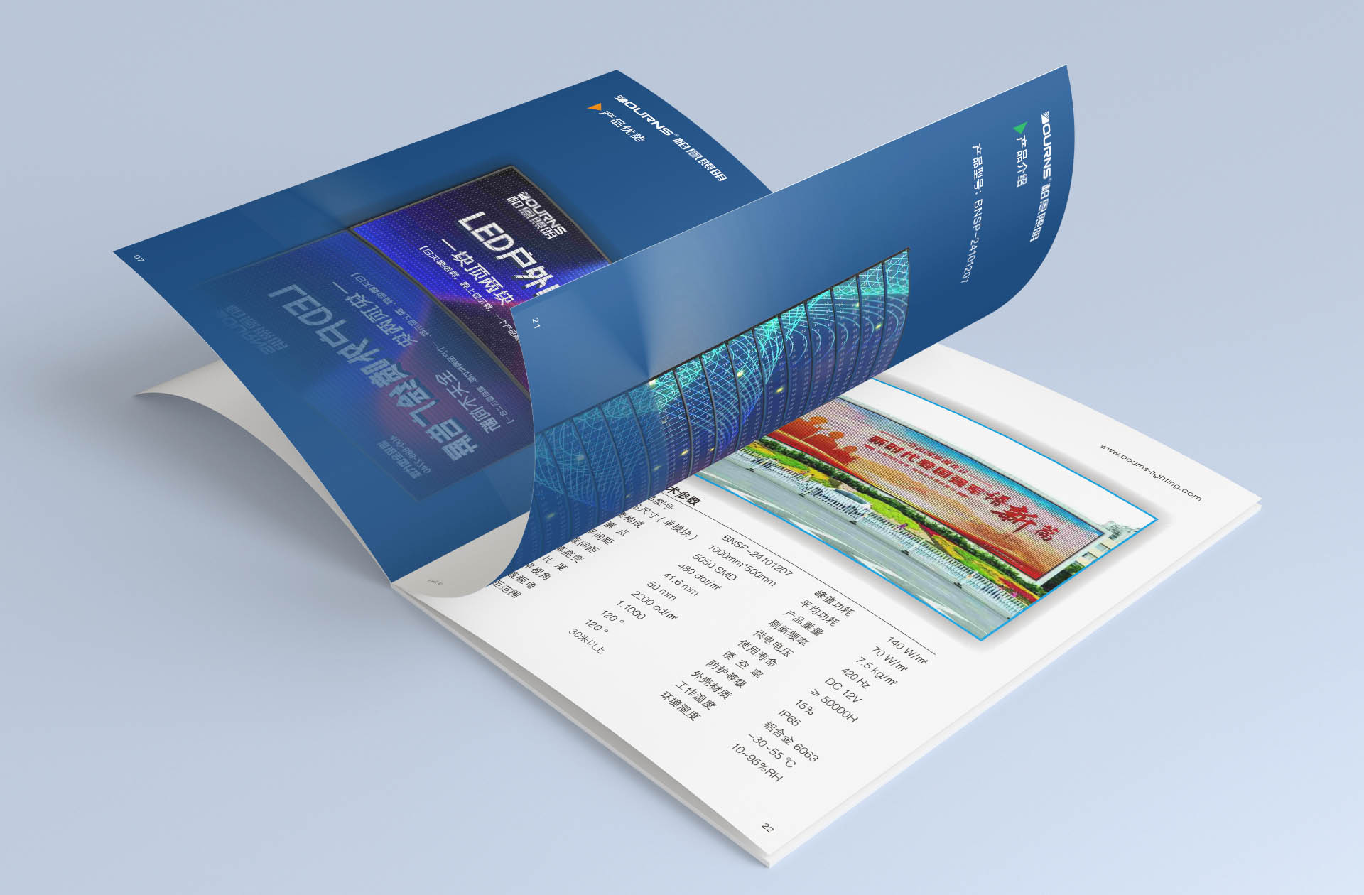 今天给大家分享柏恩照明的企业宣传册设计,这是一家专注于LED户外喷绘广告屏研发、生产、销售的综合性企业。宣传册以蓝色为主色,突出科技、电子、智能的产品及业务特点,从LOGO中提取象征图形,提升视觉展示效果,为营销赋能。关注我,每天分享宣传册设计案例。